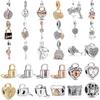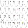 925 Silver Säkerhetskedja Lås Måne Stjärna Blad Berlock DIY Armband Smycken För Kvinnor Flickor