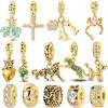 Hjärtformade Rose Gold Hängande Berlockpärlor för Kvinnor DIY Smyckesarmband Armband Halsband Lyxig Festpresent