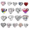 925 Silver Hjärta Zirkon Berlockpärlor Grön Röd Blå för Hänge Armband Halsband Smyckestillverkning DIY Gåva 150 Tecken