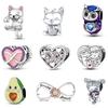 925 Silver Berlockpärlor Pingvin Snöflinga Kapybara Katt Fjäril XO Hänge för Damarmband Smycken
