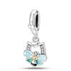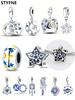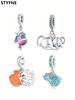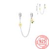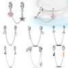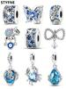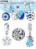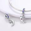 Berlocker Original Koppar Blå Måne Stjärna Säkerhetskedja Pärlor Passar Armband Dam Smycken Diy Fin Gåva Tillbehör