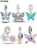 Originalberlocker Rosa Muranoglas Blomma Fjäril Pärlor Passar Koppararmband Dam DIY Smycken Presenttillbehör