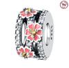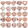 Pärlor Kopparberlocker Original Rosa Hjärta Zirkonsten Pärlor Passar Armband Smycken DIY Kvinnor Fin Presentaccessoar