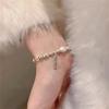 Armband med Imitation Pärlemor och Diamant Klöver - Ihålig & Glittrande Snörning, Lätt Lyx Mode Hand Smycke.