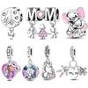 925 Silver Rosa Serie Berlocker Fluga Flicka Tårta Prinsessa Pärlor Hänge Passar Originalarmband DIY Smycken Gåva Till Kvinna