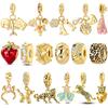 Original Berlock Pärlhänge 925 Silver Gyllene Fjäril Ballonghund Berlock Passar Armband Hänge Armring DIY Smycken Gåva