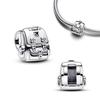 Silverberlock 925 Silver Clip-berlocker Säkerhetskedja Berlock CZ-belagd Rund Clip-pärlor Passar Originalarmband Smyckestillverkning