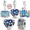 925 Silverberlocker Passar Originalarmband Stjärna Måne Sol Rymdman Hänge Pärlor DIY Damhalsband Smycken