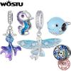 Nytt 925 Silvermunk Långklubba Glass Jordklot Hänge Berlockpärla Passar Originalhänge Armband DIY Smycken För Kvinnor