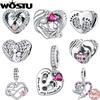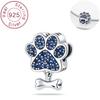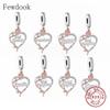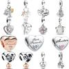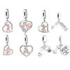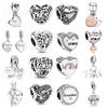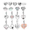 Silver 925 Silver Graverad Textberlockpärla Personlig Husdjurs Zirkon Hjärta Hänge Passar Originalarmband Smycken