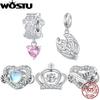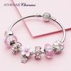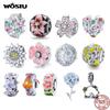 WOSTU 925 Silver Original Rosa Körsbärsblomarmband Justerbart MINI Armband Kedjelänk Passar MINI Hänge Mode Smycken