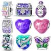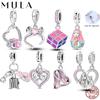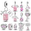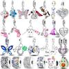 925 Silver Rosa Serie Berlocker Fluga Flicka Tårta Prinsessa Pärlor Hänge Passar Originalarmband DIY Smycken Gåva Till Kvinna