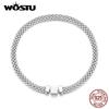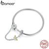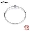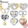 Bamoer 100% 925 Silver Evig Kärlek Ljus Hjärta Berlocker Armband för Kvinnor Kattlås Ormkedja Armband Fint Smycke