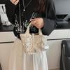 Nischdesign prickig canvasväska dam 2025 ny sommar axelväska populär supereld fritid bucketväska
