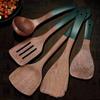 Ny! Träredskap med grönt handtag Non-stick Halkfria Skedar Spatel Kök Matlagning
