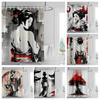 Duschdraperi i japansk stil med tryck av retrokaraktärer, färgbeständigt badrumsfördelningsdraperi för hotell- och heminredning