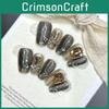 Svart Kattöga Metall Fransk Stil Nageldekoration Med Handgjord Nagellapp För Kvinnor Lyxig Prålig Stil
