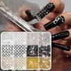 30/60 st/låda Metall Retro Cirkel Naglar Konst Berlocker 3D Punk Stil Svart Vit Nageldelar Nageldekoration Manikyrtillbehör