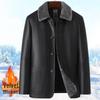 Herrjacka i PU-läder för medelålders och äldre - Varmt pälsklädd, Förtjockad, Plus Size, Höst/Vinter, Avslappnad Pappa-rock