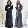 Par Vinter Nattlinne Tjock Fleece Varm Snörning Justerbar Midja Huva Fickor Stor Vattenabsorption Mellanlång Hemkläder Spa Hotell Badrock