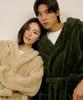 Dammorgonrock för par i molnsammet med slag, för höst och vinter, kan bäras som hemkläder, bekväm varm pyjamas, badrock