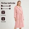 Korallfleece Långärmad Badrock Hemkläder Tjock Flanell Parrock Sovkläder Grå Höst Vinter Varm Lös Loungewear