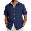 Herrrandig Sommarskjorta Kortärmad Nedvikbar Krage Knäppning Casual Lös Passform Semester Skjorta för Strandfest Semester Dejt