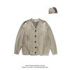 Herrstickad tröja med V-ringning och lång ärm, retro japansk-koreansk stil, lös passform för höst/vinter.