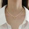 Vitt ros naturligt pärlhalsband halskedja dam Fransk retro nischdesign två bärbar nyckelbenskedja halsband