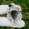 Naturlig Svart Solsten Ädelsten Hänge 925 Sterlingsilver Indiska Smycken