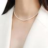 Nytt Ankomst Sterlingsilver Ton Halsband Rosafärgade Pärlor Kvinnor Pave Kristallsten Glidande Hänge Halsband Bröllopstillfälle