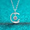 Elegant Hänge med Stjärna och Månskära med Fyrkantigt Slipade och Små Diamanter på Nyckelbenskedja
