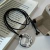 Vintage Svart Trä Ovalt Hänge Halsband För Kvinnor Minimalistiskt Matt Metallblock Justerbar Läderlina Tröjkedja Smycken