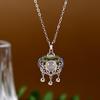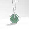 S925 Sterling Silver Hetian Jade Fyraklöver Hänge Halsband - Kinesisk Stil Nyckelbenskedja X120