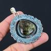 Oval Fjäderagat Ädelsten 925 Silver Födelsedag Mamma Handgjord Trendig Ny Hänge
