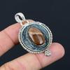 Naturlig Kokosjaspis Ädelstenshänge Brun 925 Sterlingsilver Indiska Smycken