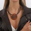 Ny Koreansk Brun Läderkedja med Abstrakt Människokropp Silverhänge - Ljus Lyx Nyckelbenskedja