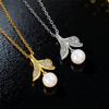 Lyxig Dam Kristall Vit Zirkonsten Lotusblomma Hänge Halsband Vintage Guld Färg Bröllop För Kvinnor