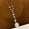 Nytt Vintage 100% Rent 925 Sterling Silver Hänge Pavé AAA Zirkonia Runda Pärlor Halsband För Kvinnor Lyxiga Bröllopssmycken