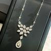 Nytt Vintage 100% Rent 925 Sterling Silver Hänge Pavé AAA Zirkonia Spadeform Halsband För Kvinnor Lyxiga Bröllopsmycken