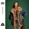 2025 Vinter Japansk Retro Unisex Bomullsjacka med Lapptäckad Pälskrage