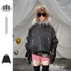 Vinter 2025 Amerikansk Retro Svart Pälskrage Bomullsjacka