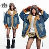 Unisex vändbar huvjacka i bomull med tjock sammet för vintern