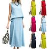 Moderna löst sittande bomulls- och linneblandningstop och kjol för kvinnor, tvådelat avslappnat set