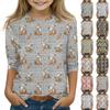 Tryckta toppar för unga flickor Rund hals 3/4 ärm T-shirts Trendiga toppar Outfit T-shirts