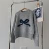 Koreansk Stil Höst Ny Tröja Kofta Dam Lös Smickrande Tröja Rosett Rund Hals Temperamentsjacka
