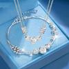 925 Sterling Silver Hjärtformat Halsband Armband Set för Kvinnor Vintage Koreanska Blå Kristallarmband Smyckesset Fest Smycken