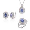 925 Sterling silver naturlig blå Topaz sten utsmyckad design ring örhängen smyckesset kvinnors nya sommar fina smycken