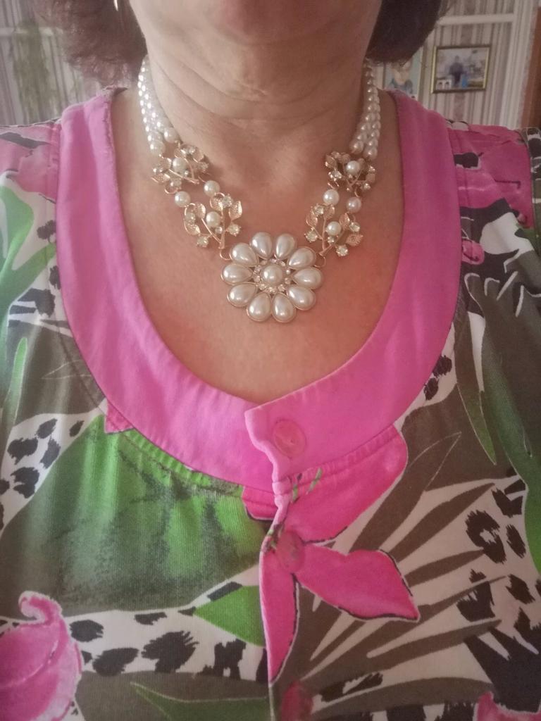 Dammode Elegant Faux Pearl Rhinestone Flower Bib Collar Halsband Choker