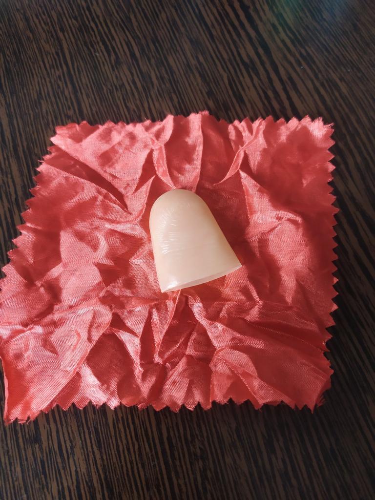 Magic Trick Rekvisita Närbild Försvinner Visar plastfinger tumspets + rött siden